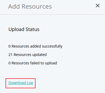 Al cargar su archivo de Excel, preste atención a los resultados de su carga en el panel lateral Agregar recursos , que enumera: