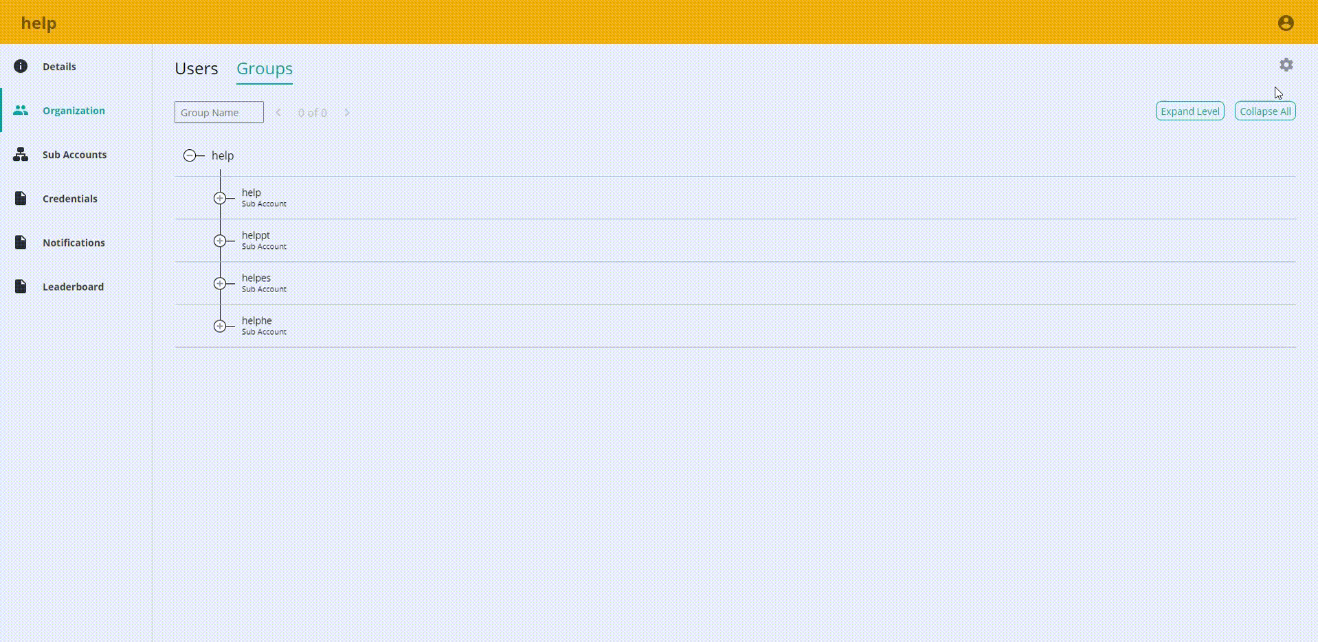 - Cuando haya terminado, haga clic en Guardar y salir. El grupo organizativo aparece en la pestaña Grupos. Puede crear una jerarquía agregando grupos en diferentes niveles jerárquicos.