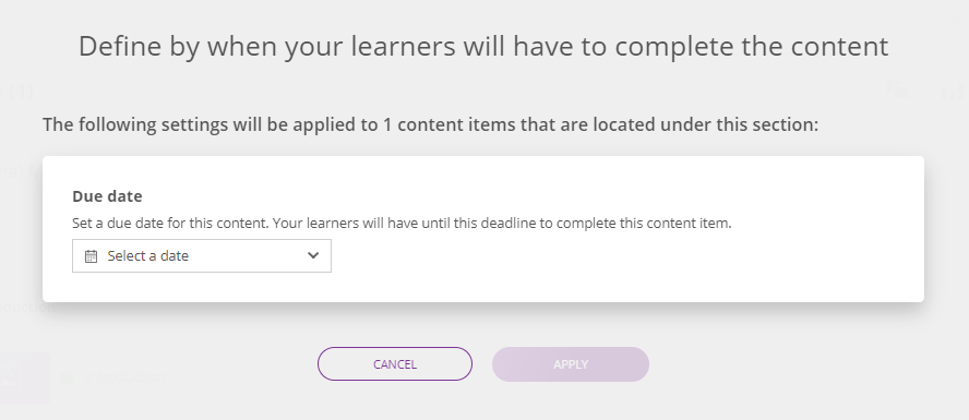 Agora defina a data de vencimento que você gostaria de aplicar a todos os itens de conteúdo que estão atualmente nesta seção e clique em Aplicar: